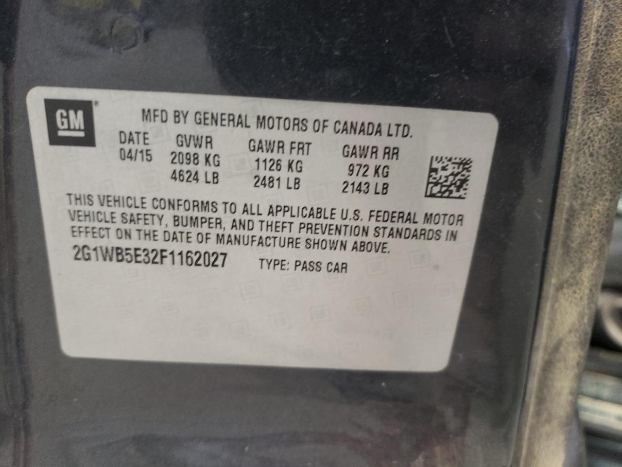 Колір Деревне вугілляЦиліндри 6VIN 2G1WB5E32F1162027Стан Заводиться та їде (перевірено)Ушкодження Задня