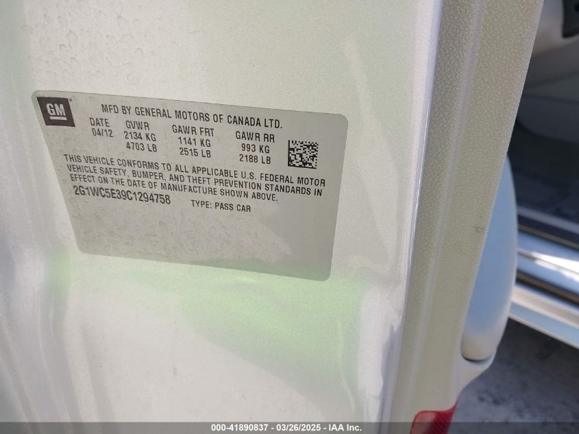 CHEVROLET IMPALA 3.6 2012 р.в., Передній привід (2G1WC5E39C1294758) з США