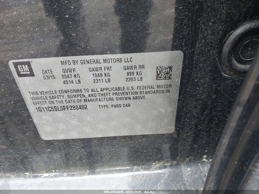 CHEVROLET MALIBU 2.5 2015 р.в., Передній привід (1G11C5SL5FF280402) з США