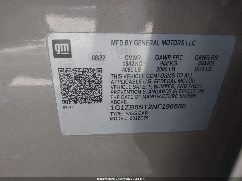 CHEVROLET MALIBU 1.5 2022 р.в., Передній привід (1G1ZB5ST2NF190550) з США