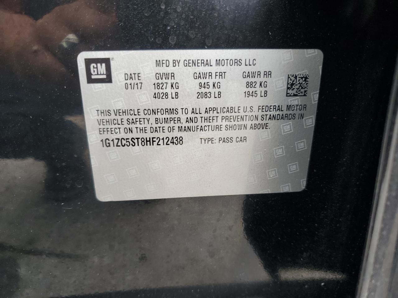 Колір ЧорнийЦиліндри 4VIN 1G1ZC5ST8HF212438Стан Заводиться та їде (перевірено)Ушкодження З боківДата аукціону 2025-11-03