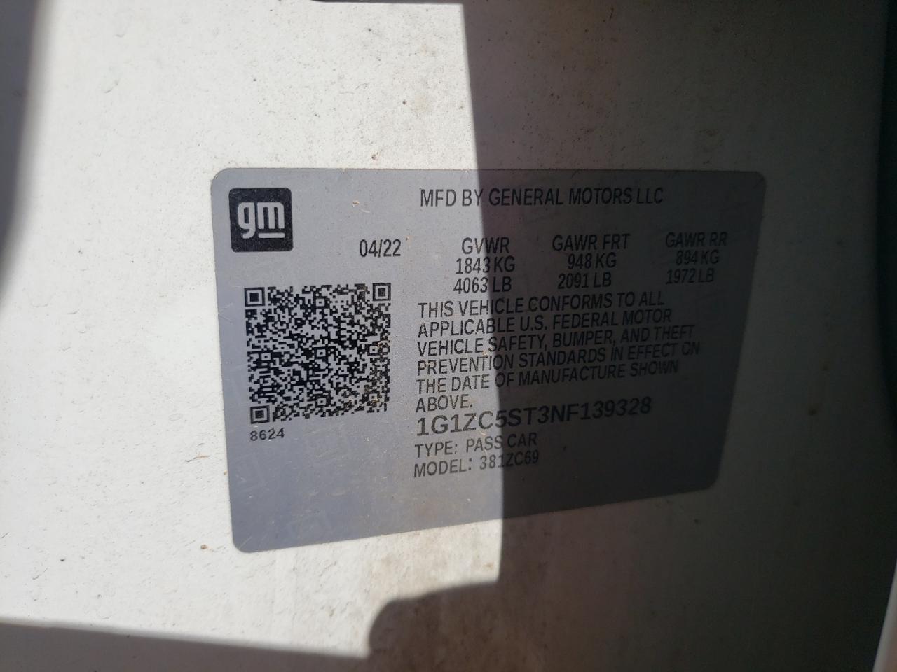CHEVROLET MALIBU 1.5 2022 р.в., (1G1ZC5ST3NF139328) з США