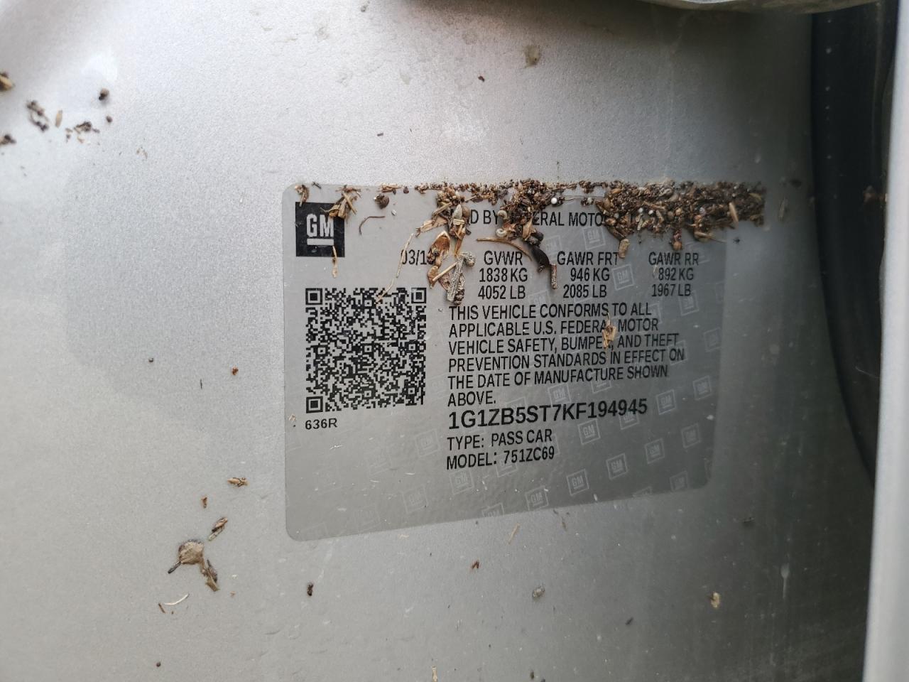 Колір СрібнийЦиліндри 4VIN 1G1ZB5ST7KF194945Стан Заводиться та їде (перевірено)Ушкодження Вода