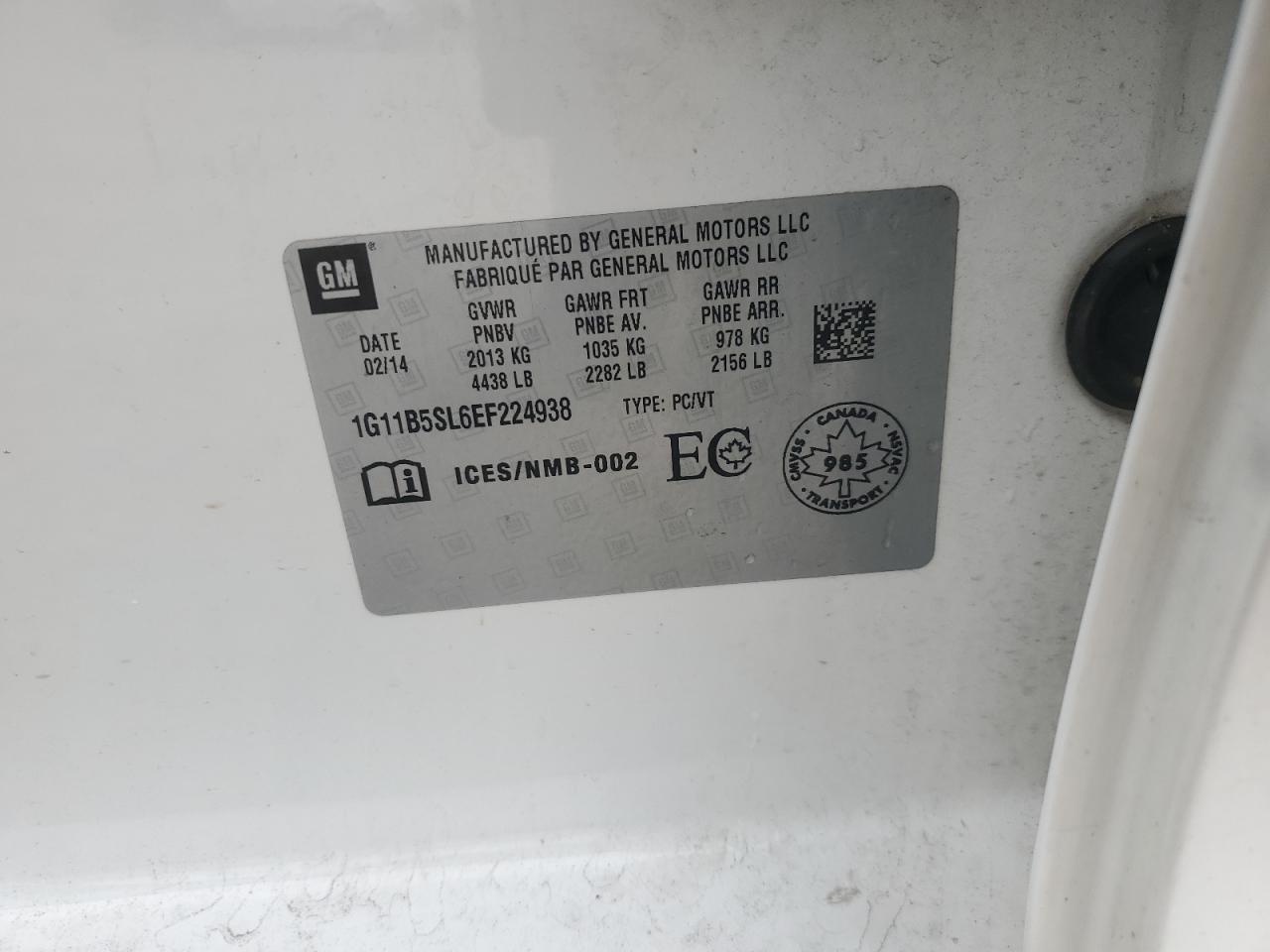 Колір БілийЦиліндри 4VIN 1G11B5SL6EF224938Стан Заводиться та їде (перевірено)Ушкодження Передня або задня