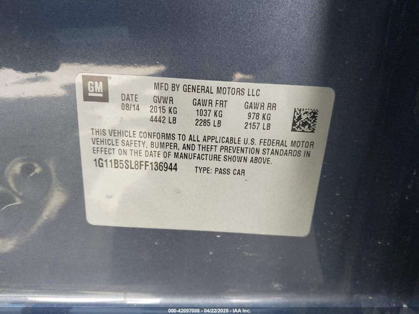 CHEVROLET MALIBU 2.5 2015 р.в., Передній привід (1G11B5SL8FF136944) з США