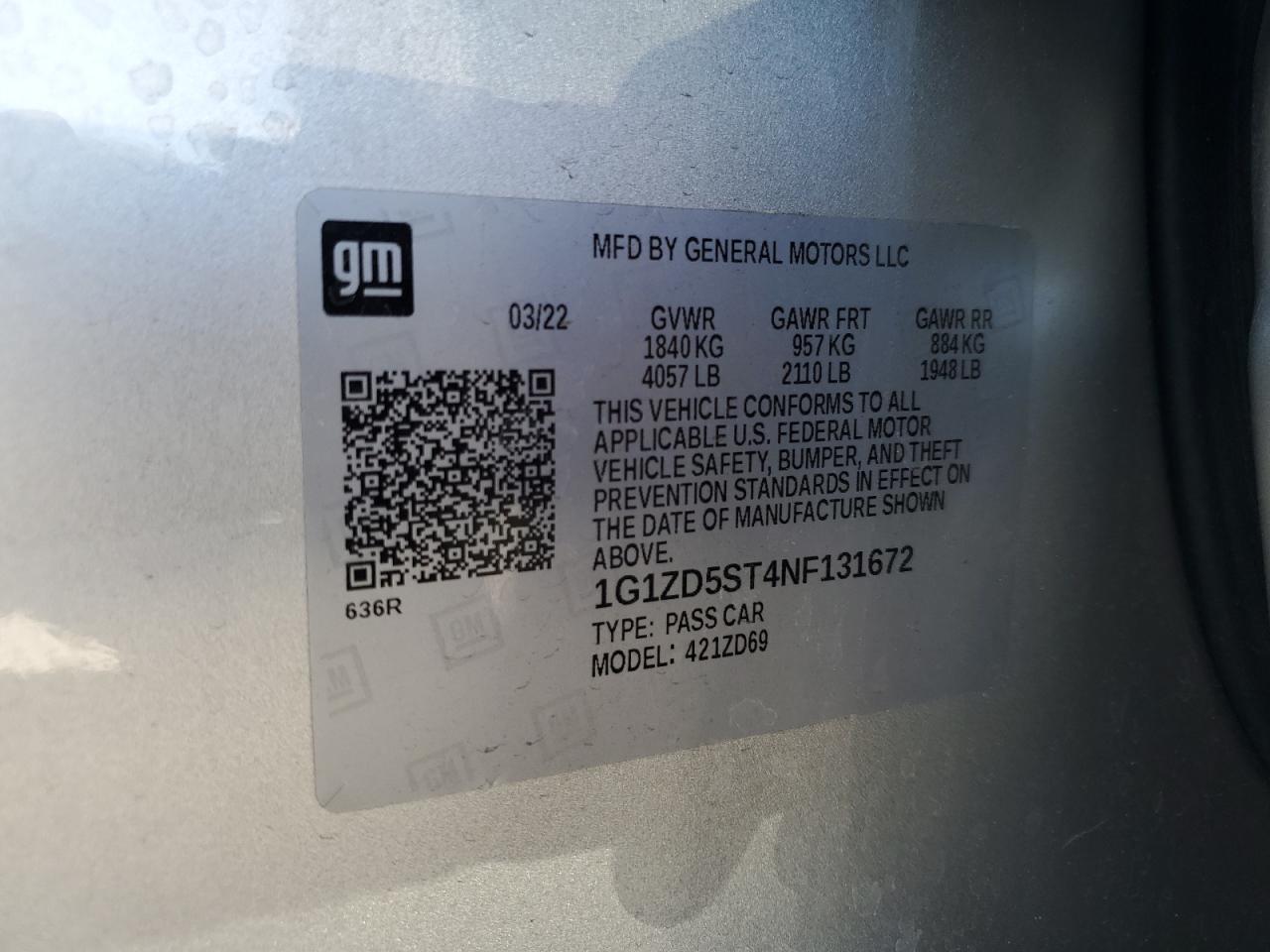 Колір СрібнийЦиліндри 4VIN 1G1ZD5ST4NF131672Стан Заводиться та їде (перевірено)Ушкодження ЗадняДата аукціону 2025-11-04