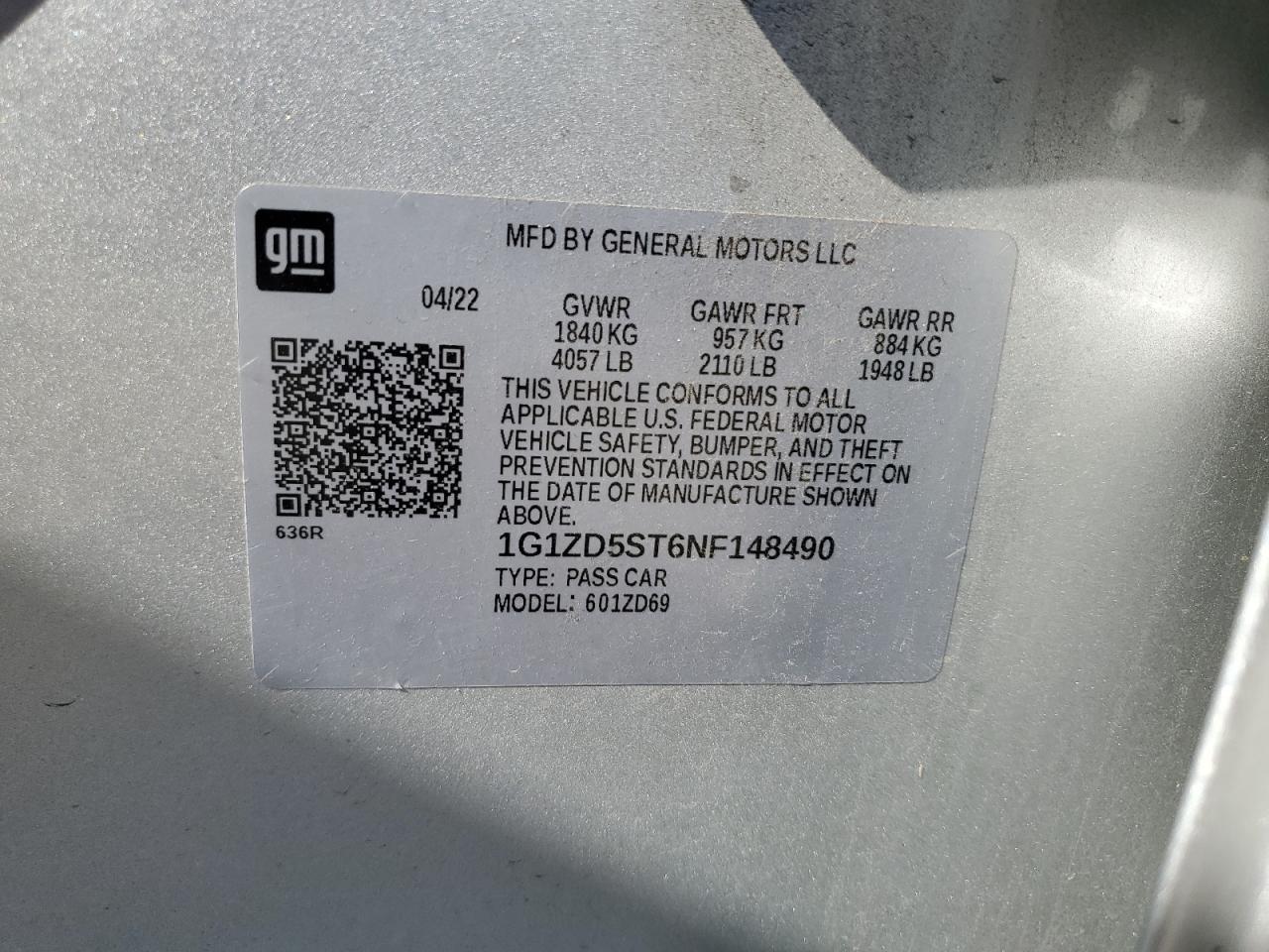 2022 CHEVROLET MALIBU FWD 1FL