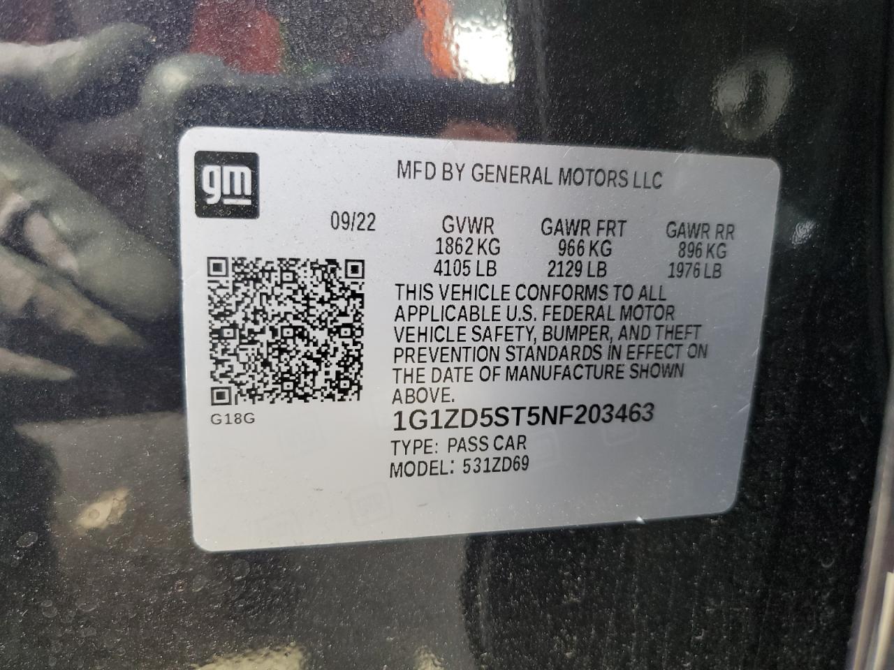 2022 CHEVROLET MALIBU FWD 1FL