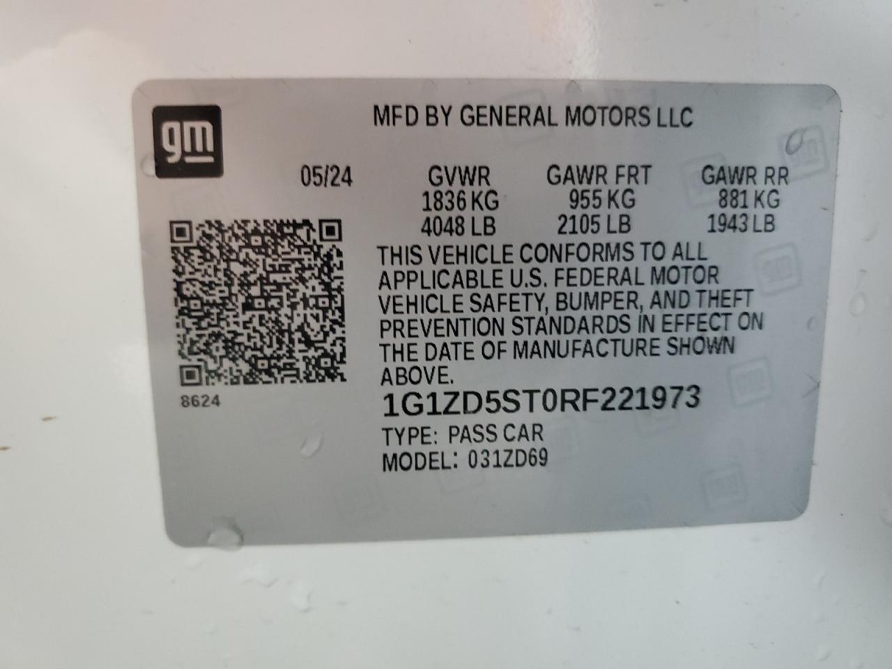 CHEVROLET MALIBU 1.5 2024 р.в., (1G1ZD5ST0RF221973) з США