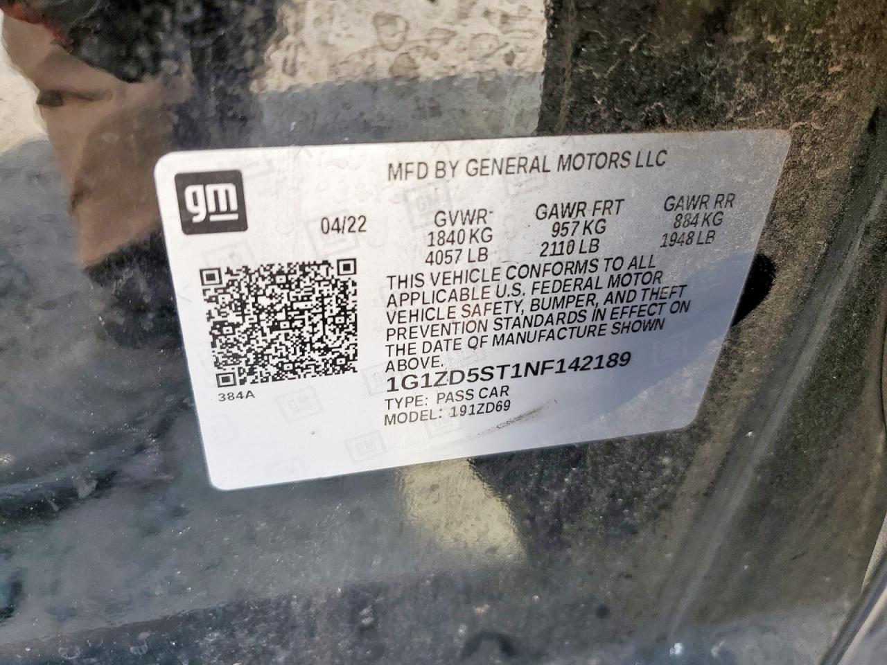 Колір ЧорнийЦиліндри 4VIN 1G1ZD5ST1NF142189Стан ЗаводитьсяУшкодження Передня або задня