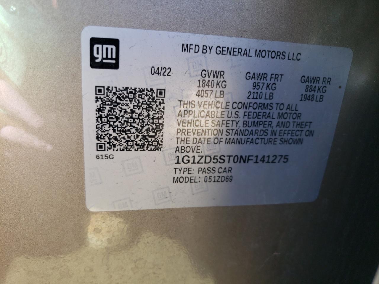 2022 CHEVROLET MALIBU FWD 1FL