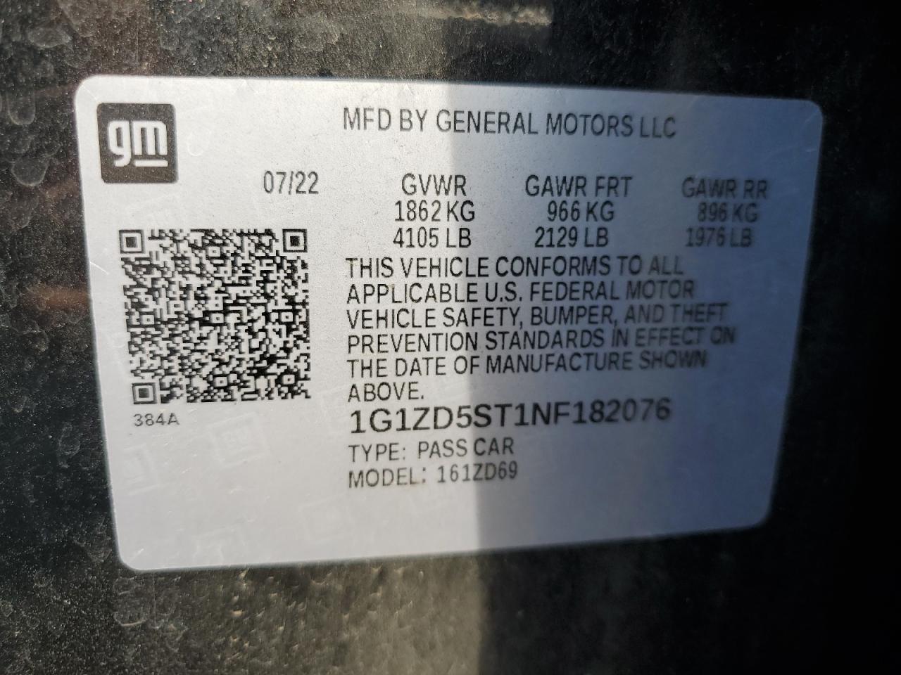 2022 CHEVROLET MALIBU FWD 1FL