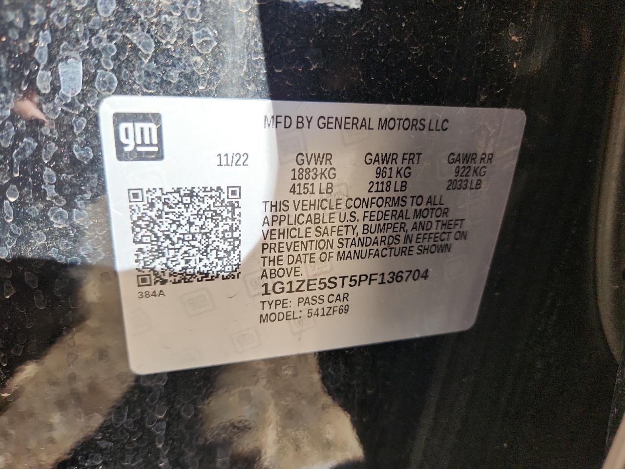 Колір ЧорнийЦиліндри 4VIN 1G1ZE5ST5PF136704Стан Заводиться та їде (перевірено)Ушкодження Передня або задня