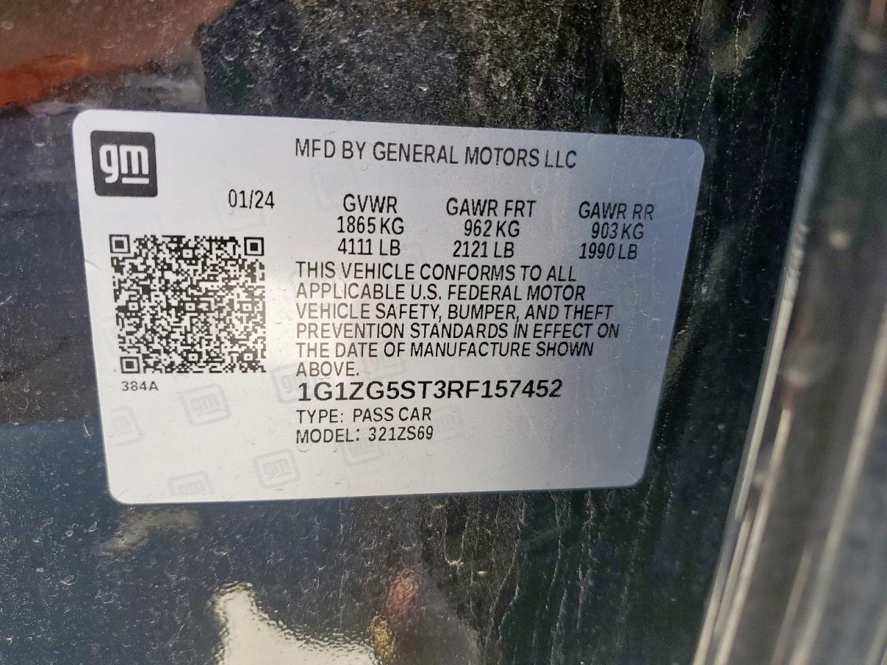 CHEVROLET MALIBU 1.5 2024 р.в., (1G1ZG5ST3RF157452) з США