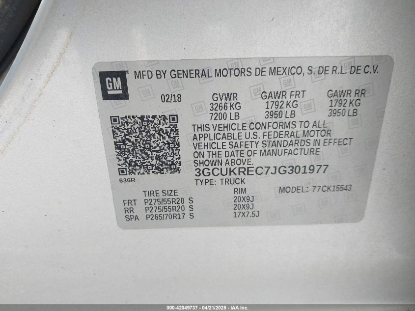 Колір СрібнийЦиліндри 8Привід Повний привідVIN 3GCUKREC7JG301977Стан СтаціонарноУшкодження Вода