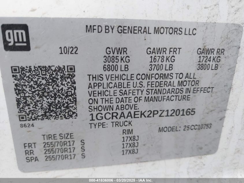 Колір БілийЦиліндри 4VIN 1GCRAAEK2PZ120165Стан СтаціонарноУшкодження Передня або задня