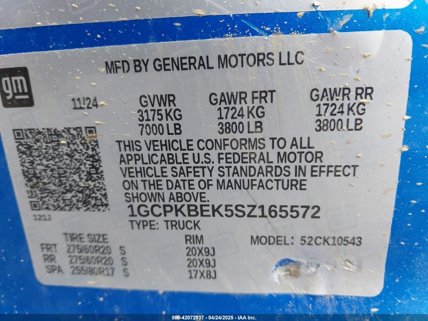 Колір СинійЦиліндри 4Привід Повний привідVIN 1GCPKBEK5SZ165572Стан СтаціонарноУшкодження Біо/ХімічніДата аукціону 2025-11-05