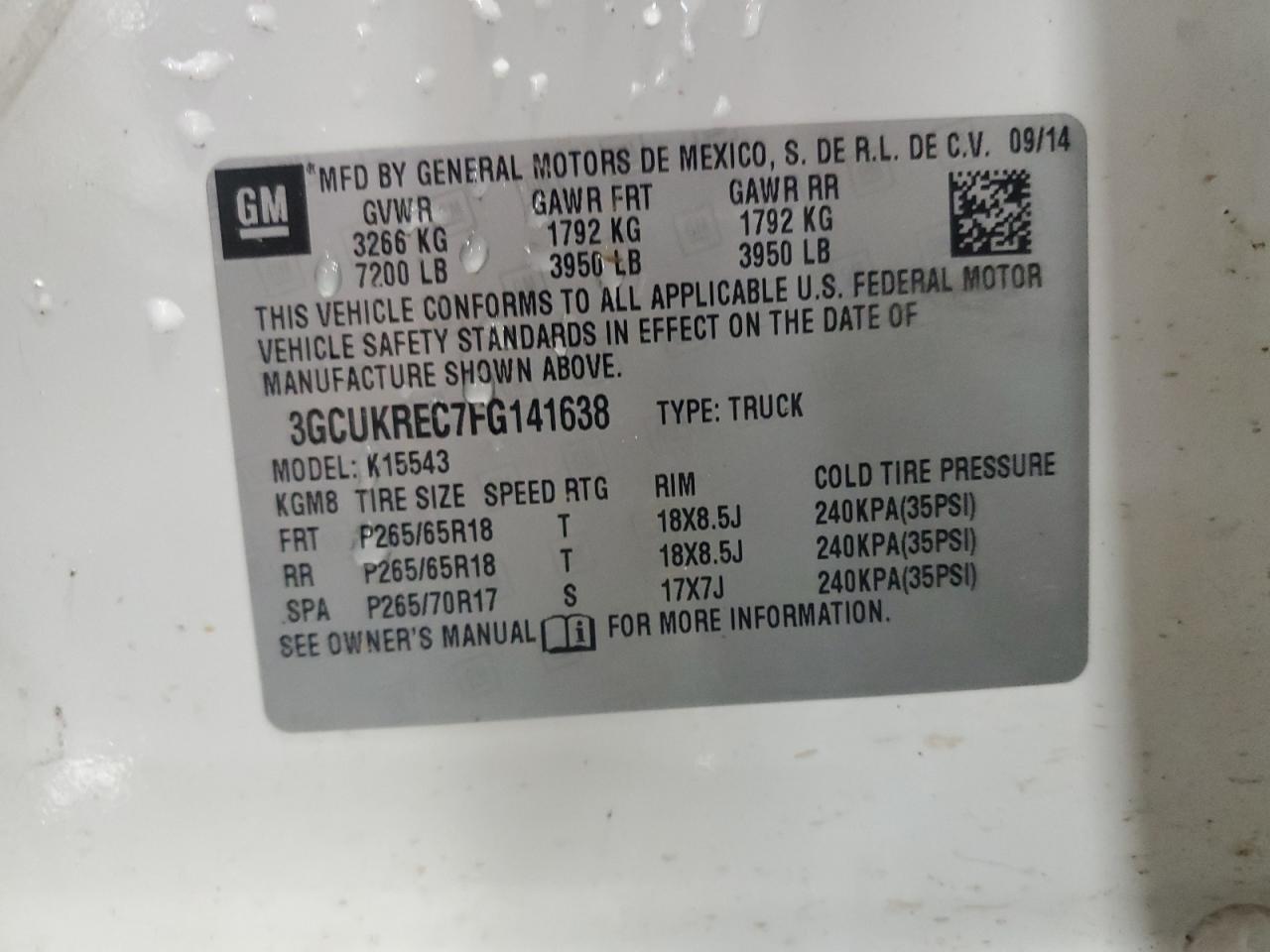 Колір БілийЦиліндри 8Привід 4x4 з заднім приводомVIN 3GCUKREC7FG141638Стан Заводиться та їде (перевірено)Ушкодження Передня або задняДата аукціону 2025-11-06