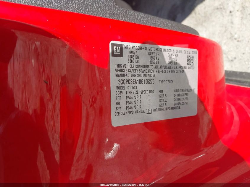 Колір ЧервонийЦиліндри 8VIN 3GCPCSEA1BG105275Стан Заводиться та їде (перевірено)Ушкодження Права сторона