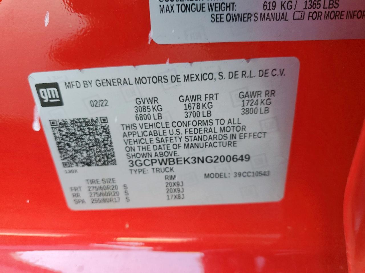 CHEVROLET SILVERADO 2.7 2022 р.в., Задній привід (3GCPWBEK3NG200649) з США
