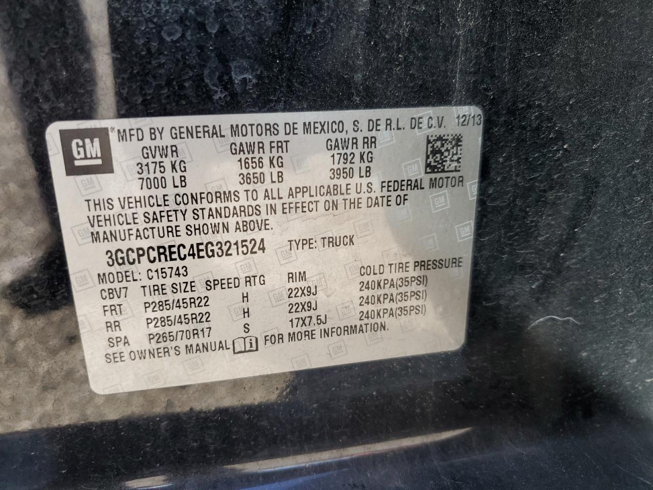 Колір ЧорнийЦиліндри 8Привід Задній привідVIN 3GCPCREC4EG321524Стан Заводиться та їде (перевірено)Ушкодження Задня