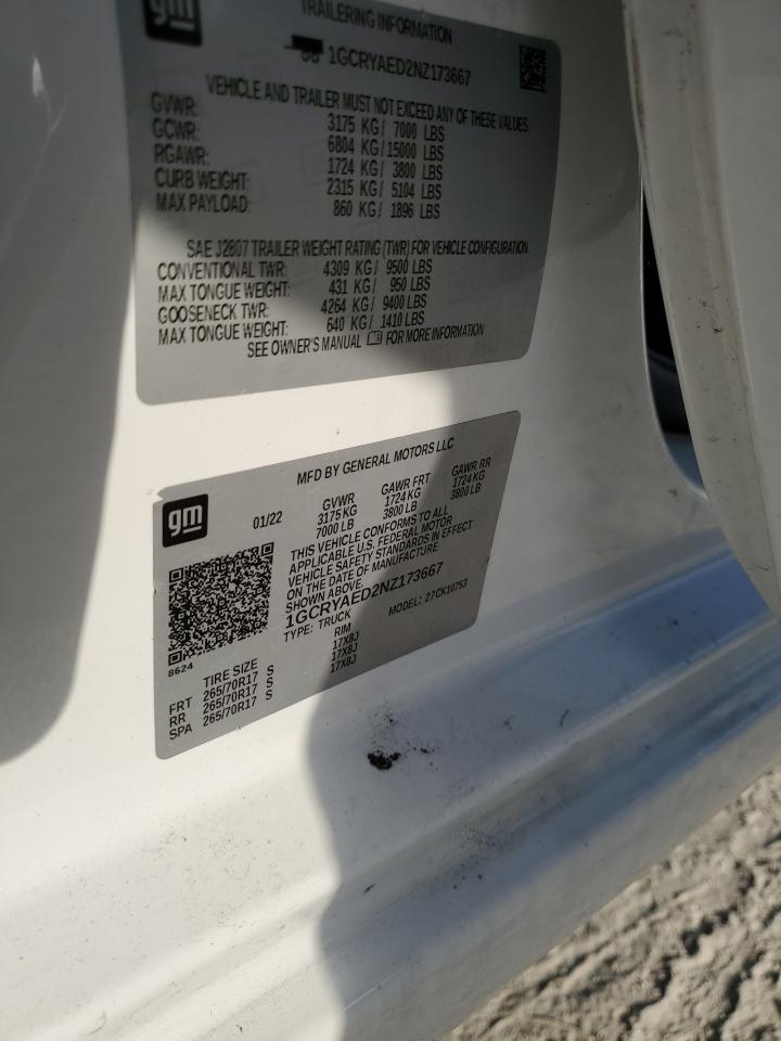 CHEVROLET SILVERADO 5.3 2022 р.в., 4x4 з заднім приводом (1GCRYAED2NZ173667) з США