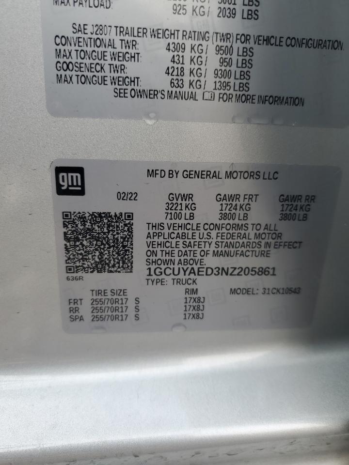 CHEVROLET SILVERADO 5.3 2022 р.в., 4x4 з заднім приводом (1GCUYAED3NZ205861) з США