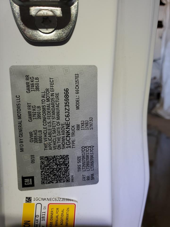 Колір БілийЦиліндри 8Привід 4x4 з заднім приводомVIN 1GCNKNEC6JZ359866Стан Заводиться та їде (перевірено)Ушкодження Передня або задня