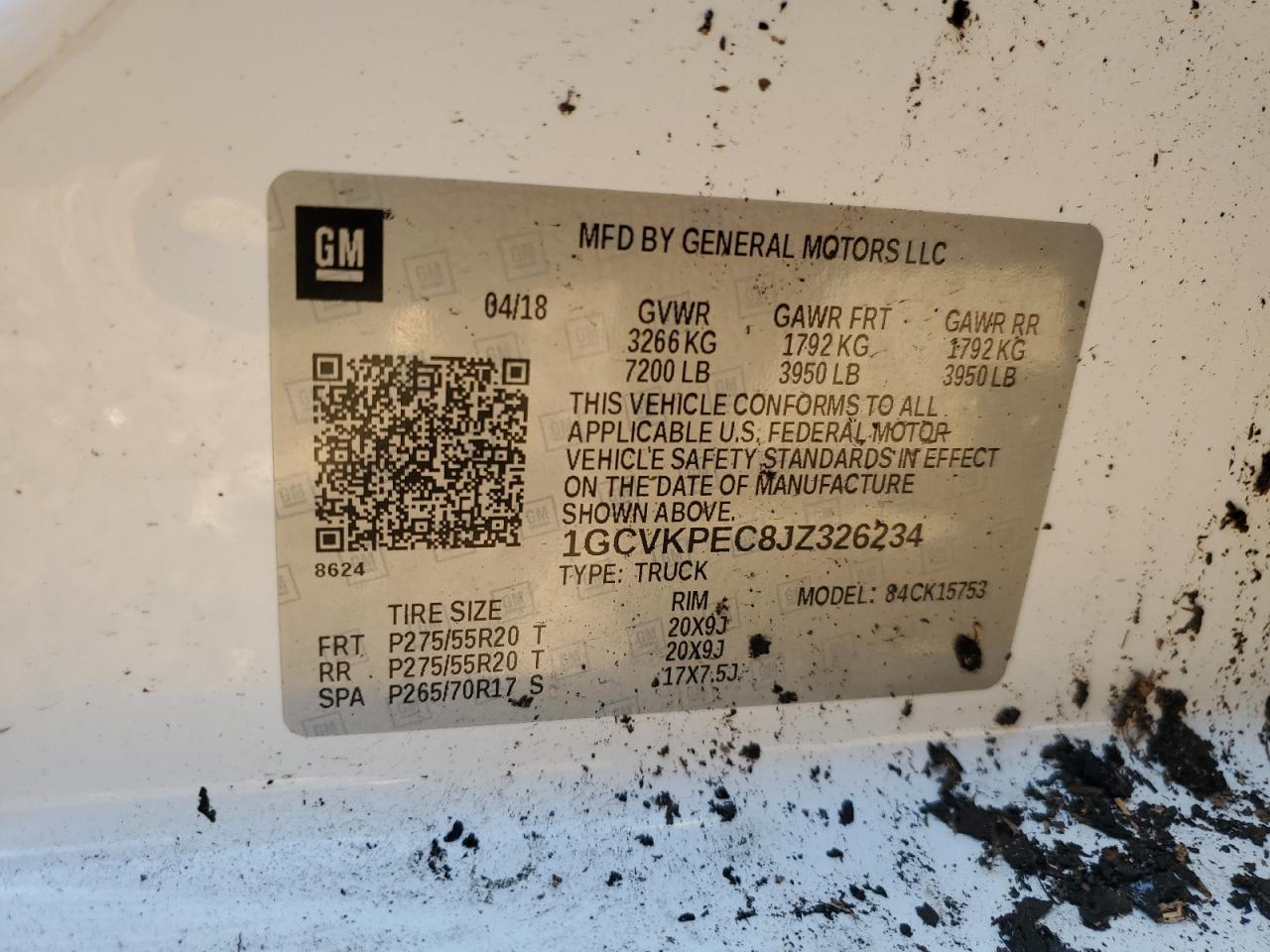 Колір БілийЦиліндри 8Привід 4x4 з заднім приводомVIN 1GCVKPEC8JZ326234Стан Заводиться та їде (перевірено)Ушкодження Передня або задня