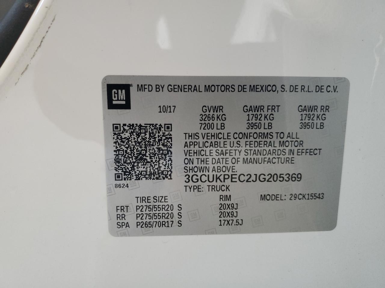 Колір БілийЦиліндри 8Привід 4x4 з заднім приводомVIN 3GCUKPEC2JG205369Стан Заводиться та їде (перевірено)Ушкодження Передня або задня
