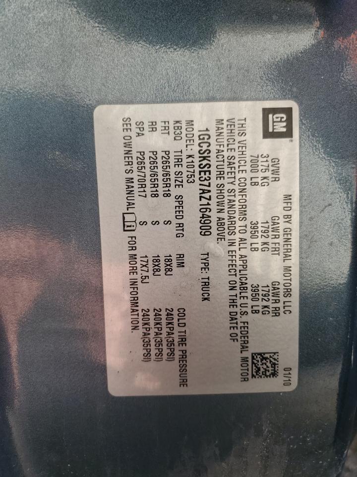 CHEVROLET SILVERADO 5.3 2010 р.в., 4x4 з заднім приводом (1GCSKSE37AZ164909) з США
