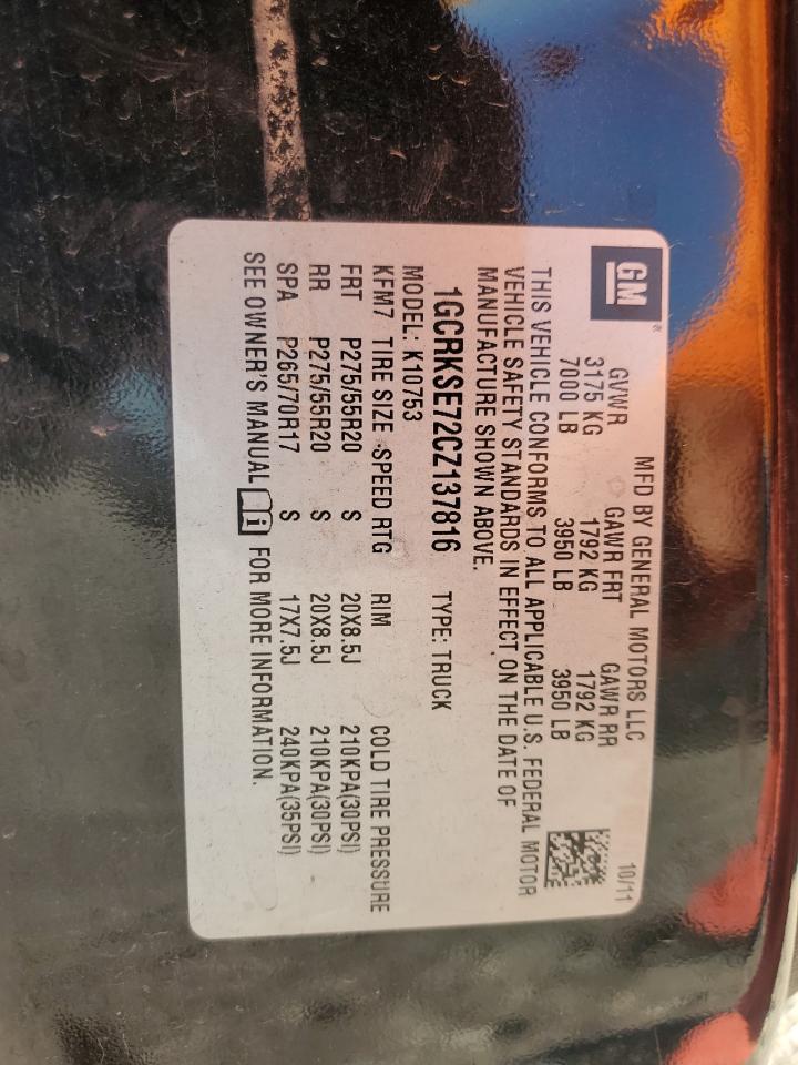CHEVROLET SILVERADO 5.3 2012 р.в., 4x4 з заднім приводом (1GCRKSE72CZ137816) з США
