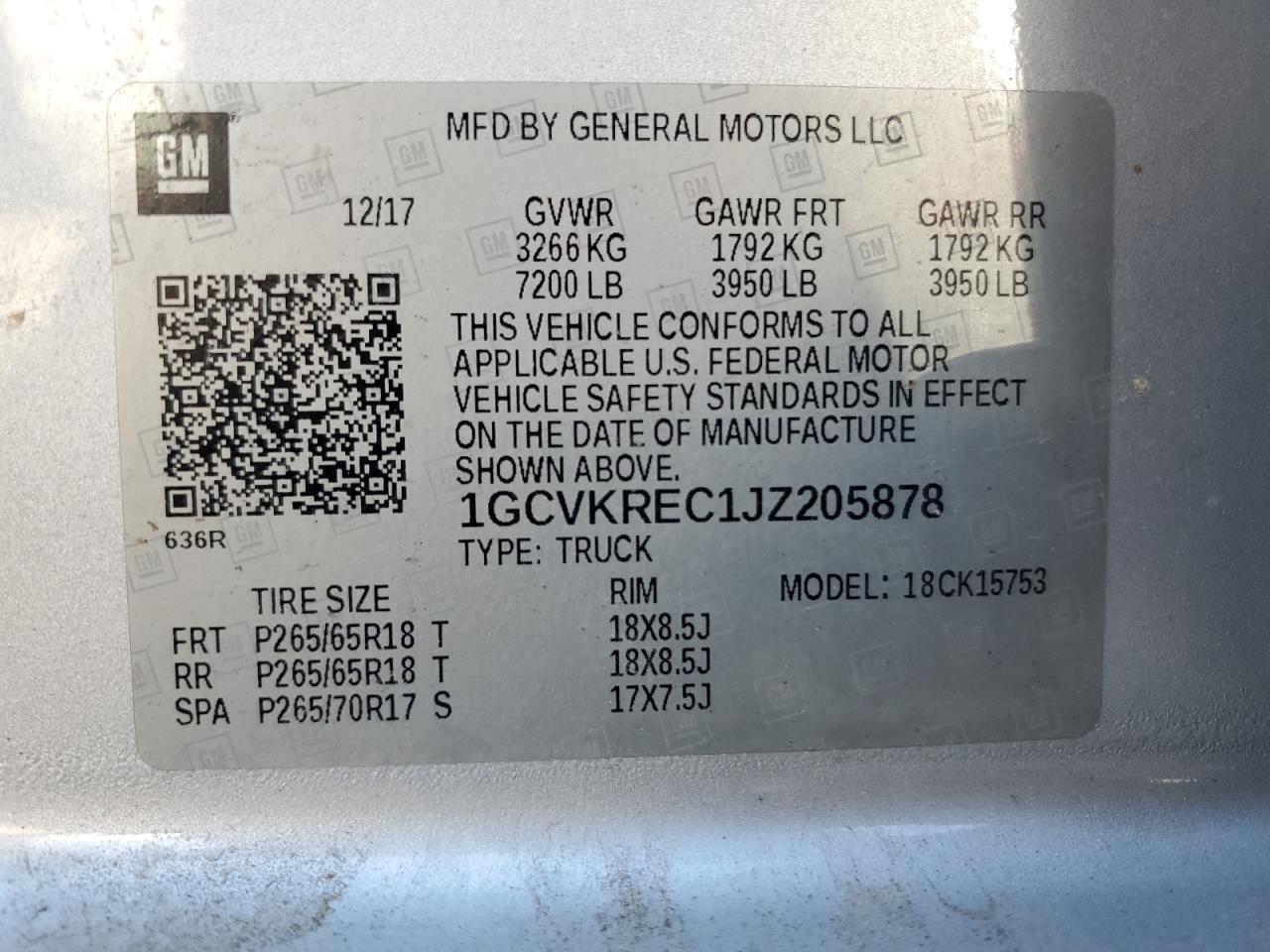 CHEVROLET SILVERADO 5.3 2018 р.в., 4x4 з заднім приводом (1GCVKREC1JZ205878) з США