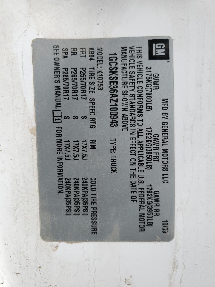 Колір БілийЦиліндри 8Привід 4x4 з заднім приводомVIN 1GCSKSE36AZ100943Стан Заводиться та їде (перевірено)Ушкодження Задня
