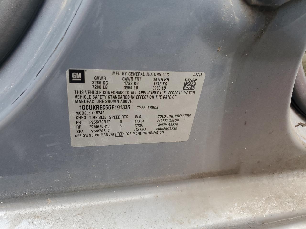 2016 CHEVROLET SILVERADO K1500 LT