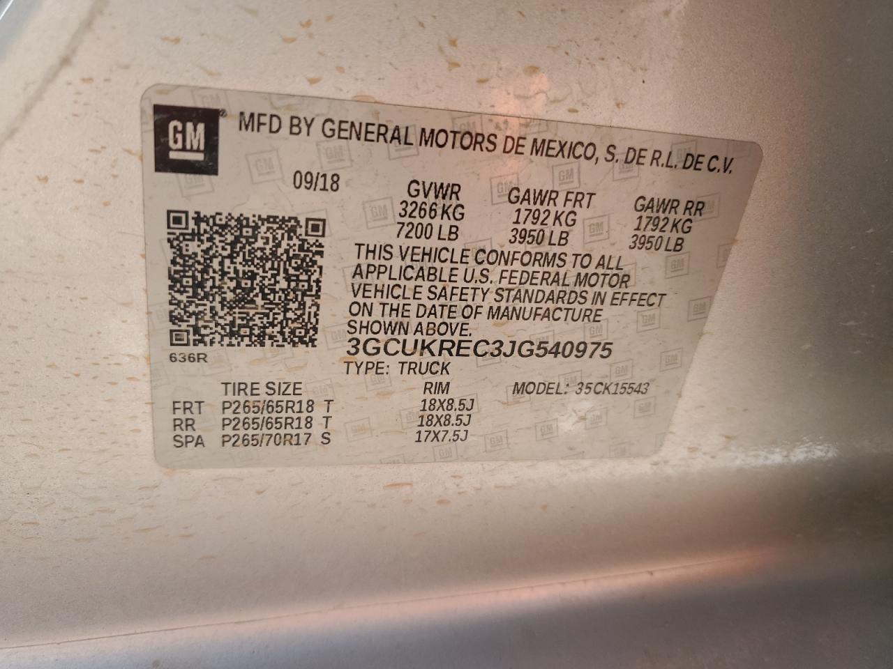 Колір СрібнийЦиліндри 8Привід 4x4 з заднім приводомVIN 3GCUKREC3JG540975Стан Заводиться та їде (перевірено)Ушкодження Передня або задня