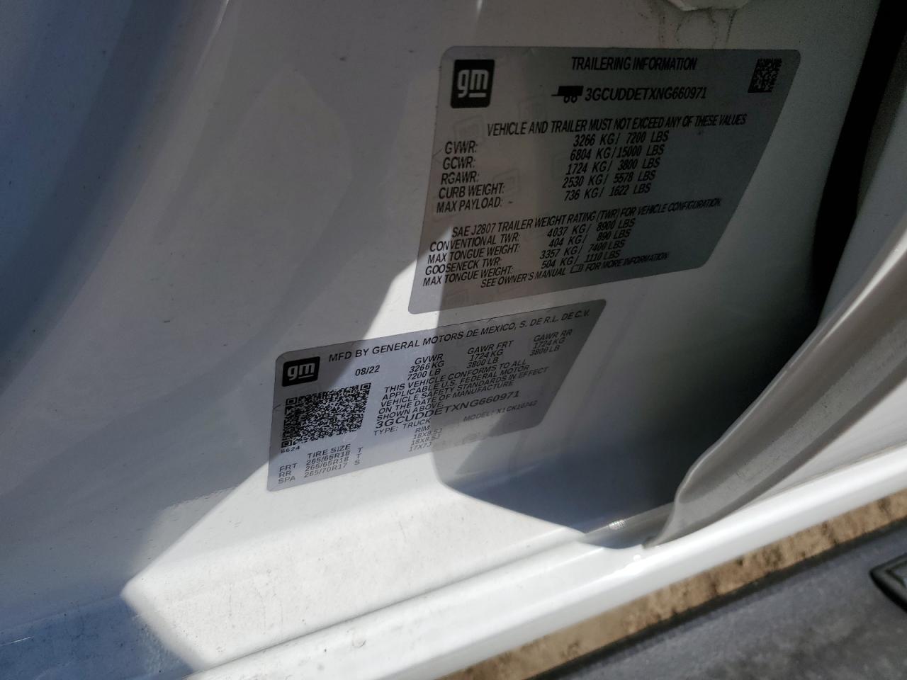 Колір БілийЦиліндри 6Привід 4x4 з заднім приводомVIN 3GCUDDETXNG660971Стан Заводиться та їде (перевірено)Ушкодження Передня або задня