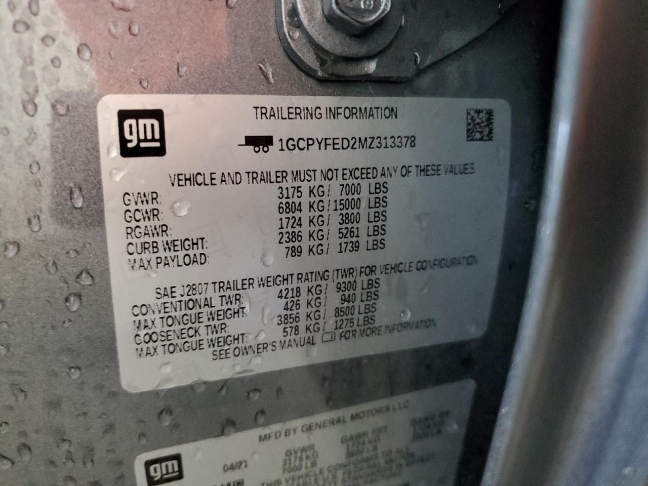 CHEVROLET SILVERADO 5.3 2021 р.в., 4x4 з заднім приводом (1GCPYFED2MZ313378) з США