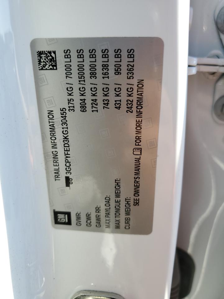 Колір БілийЦиліндри 8Привід 4x4 з заднім приводомVIN 3GCPYFED3KG130455Стан Заводиться та їде (перевірено)Ушкодження Передня або задняДата аукціону 2025-11-17