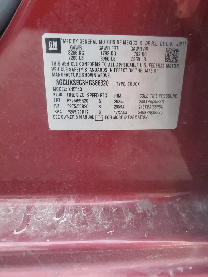 Колір БургундіяЦиліндри 8Привід 4x4 з заднім приводомVIN 3GCUKSEC3HG386320Стан Заводиться та їде (перевірено)Ушкодження Передня або задня