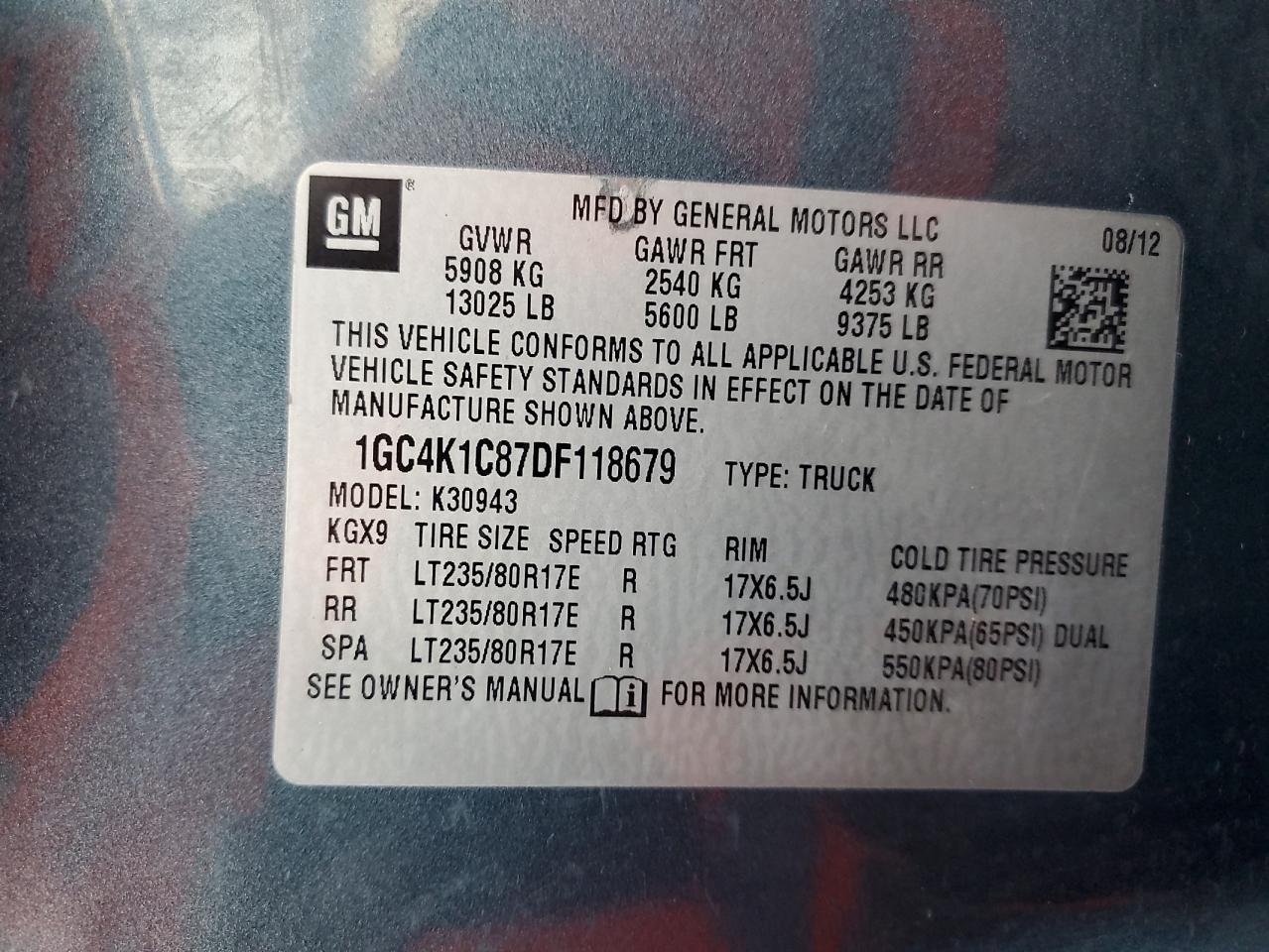 Колір СинійЦиліндри 8Привід 4x4 з заднім приводомVIN 1GC4K1C87DF118679Стан ЗаводитьсяУшкодження З боків
