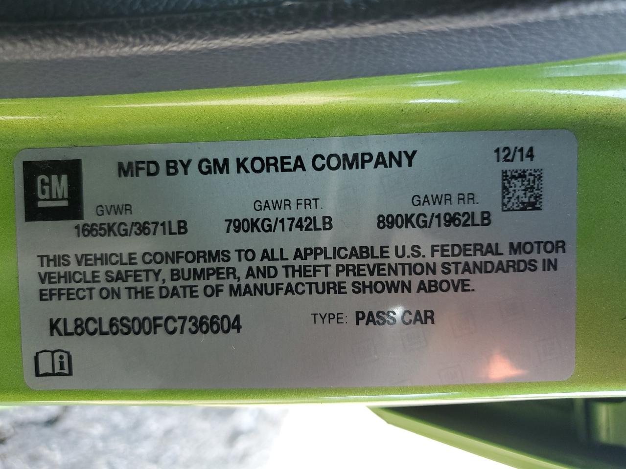 CHEVROLET SPARK 2015 р.в., (KL8CL6S00FC736604) з США