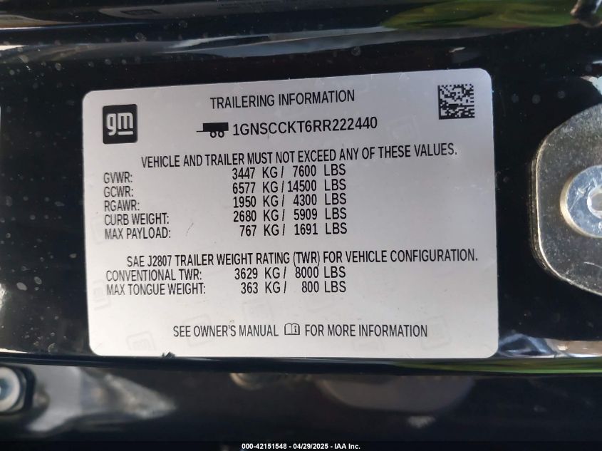 Колір ЧорнийЦиліндри 6VIN 1GNSCCKT6RR222440Стан СтаціонарноУшкодження Пожежа двигунаДата аукціону 2025-11-03