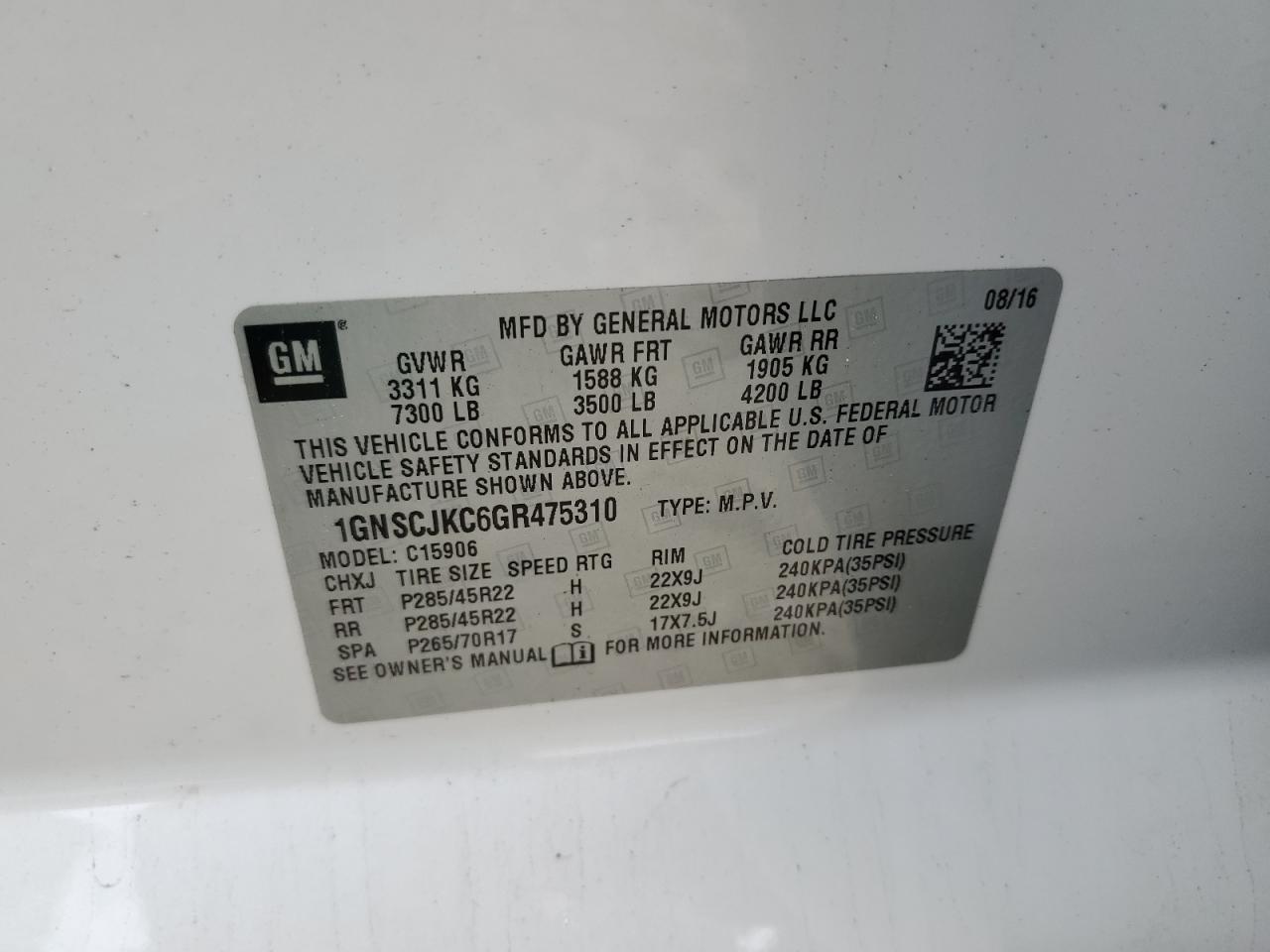Колір БілийЦиліндри 8Привід Задній привідVIN 1GNSCJKC6GR475310Стан Заводиться та їде (перевірено)Ушкодження ПерекиданняДата аукціону 2025-11-03
