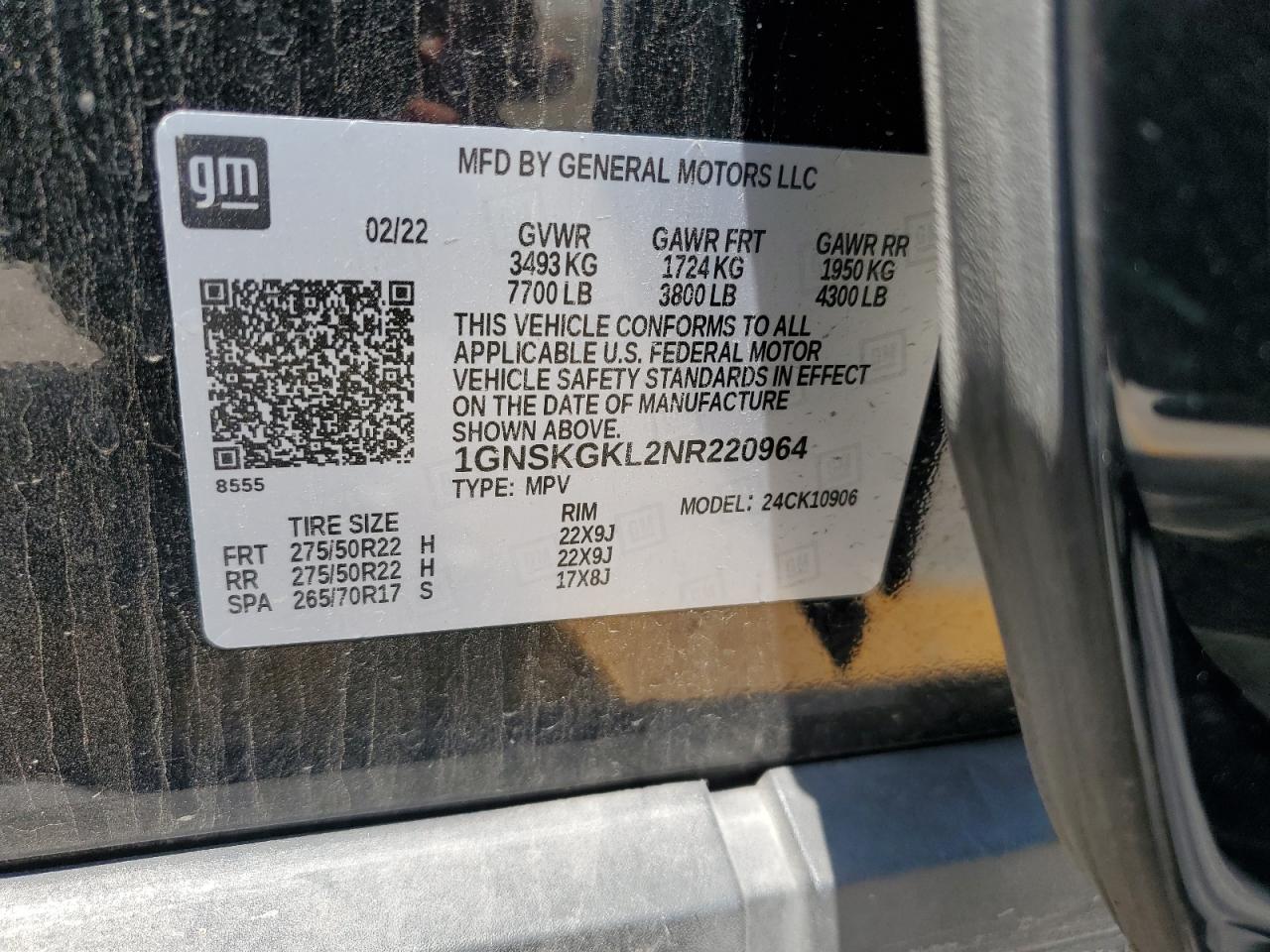 CHEVROLET SUBURBAN 6.2 2022 р.в., 4x4 з заднім приводом (1GNSKGKL2NR220964) з США