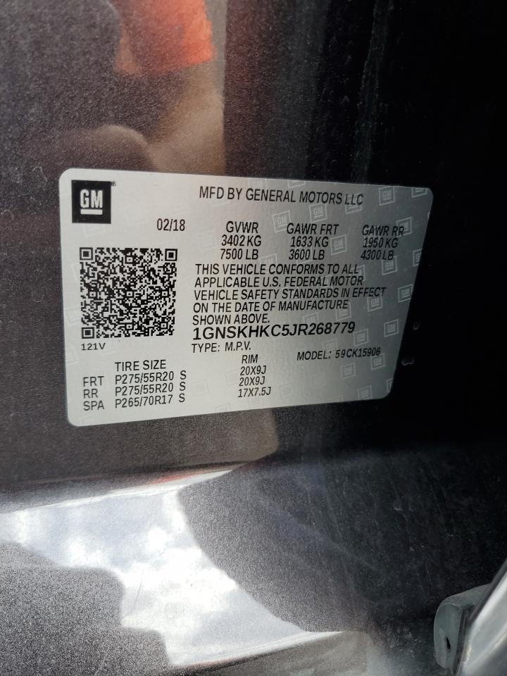 CHEVROLET SUBURBAN 5.3 2018 р.в., 4x4 з заднім приводом (1GNSKHKC5JR268779) з США