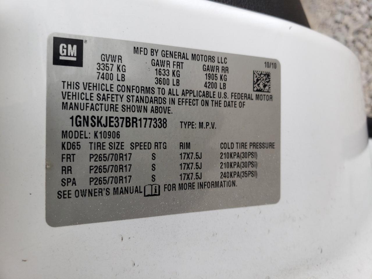 Колір БілийЦиліндри 8Привід 4x4 з заднім приводомVIN 1GNSKJE37BR177338Стан Заводиться та їде (перевірено)Ушкодження НезначніДата аукціону 2025-11-04