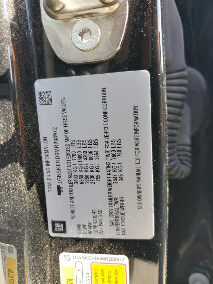 CHEVROLET SUBURBAN 5.3 2021 р.в., 4x4 з заднім приводом (1GNSKEKD6MR288972) з США