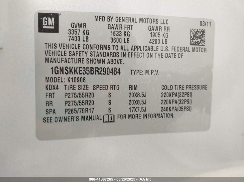 CHEVROLET SUBURBAN 5.3 2011 р.в., Повний привід (1GNSKKE35BR290484) з США