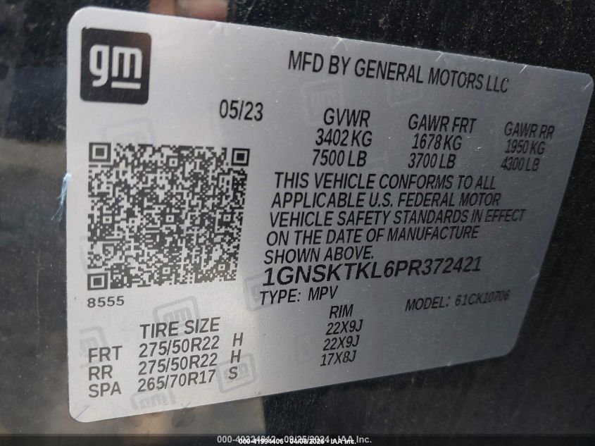 CHEVROLET TAHOE 6.2 2023 р.в., Повний привід (1GNSKTKL6PR372421) з США